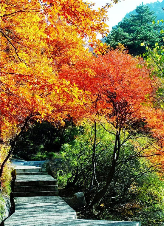 古時稱登東峰道路艱險,《三才圖會》記述說:山崗如削出的一面坡,高數十丈,上面僅鑿了幾個足窩,兩邊又無樹枝藤蔓可以攀援,登峰的人只有爬在崗石上,腳手并用才能到達峰巔。今已開辟并拓寬幾條登峰臺階路,游人可安全到達。