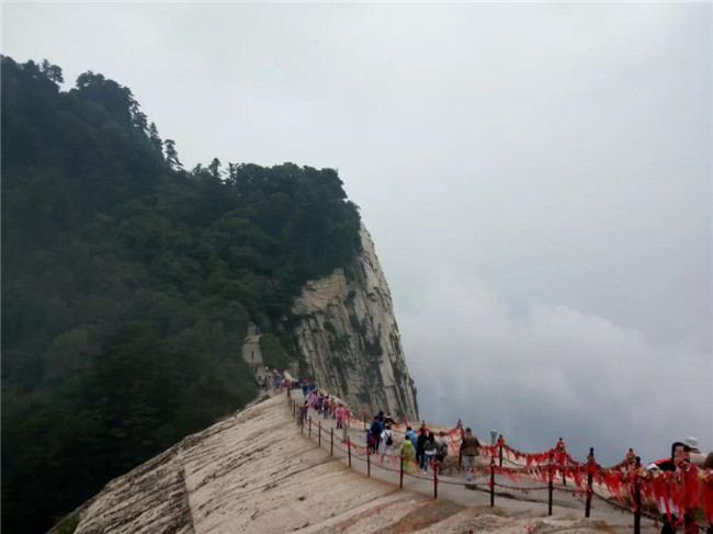 魏晉南北朝時,還沒有通向華山峰頂的道路。直到唐朝,隨著道教興盛,道徒開始居山建觀逐漸在北坡沿溪谷而上開鑿了一條險道,形成了"自古華山一條路"。