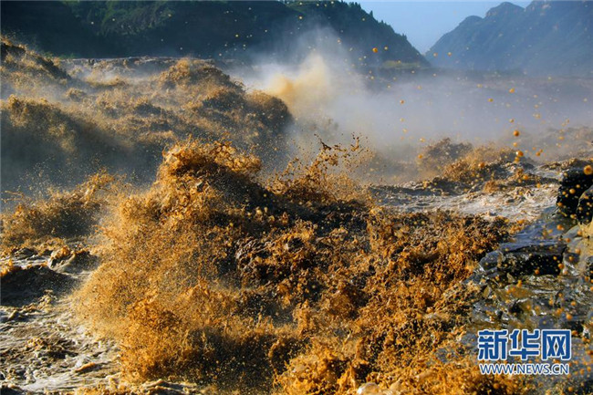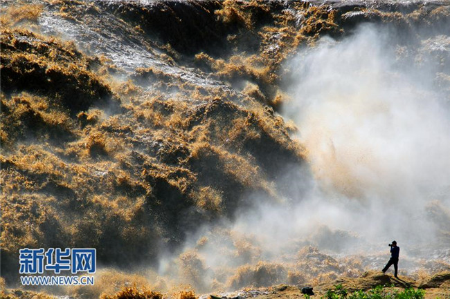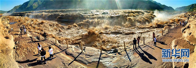 入秋以來,受上游降雨影響,陜西宜川黃河壺口瀑布水量大增,出現“山飛海立”、“旱天鳴雷”的自然景觀,引來眾多游客和攝影愛好者。(趙潔)