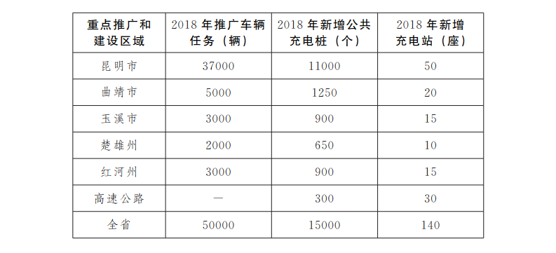 充電基礎(chǔ)設(shè)施建設(shè)目標(biāo)為:按照“樁站先行、適度超前”的原則建設(shè)充電基礎(chǔ)設(shè)施,重點(diǎn)在昆明市、曲靖市、玉溪市、楚雄州、紅河州等滇中城市群和旅游城市及景區(qū),加快布局建設(shè)充電基礎(chǔ)設(shè)施,2018年昆明等滇中城市群及城際高速公路新增公共充電樁1.5萬(wàn)個(gè),集中式充電站新增140座以上。其他州、市根據(jù)新能源汽車推廣情況,積極推進(jìn)充電基礎(chǔ)設(shè)施建設(shè)。