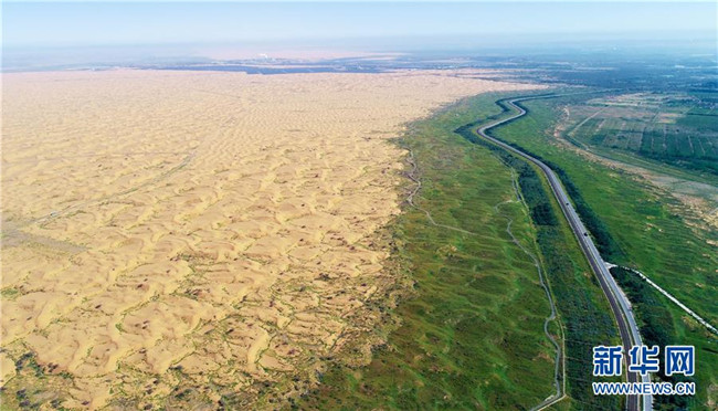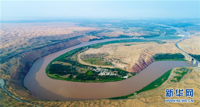 黃河流經(jīng)寧夏中衛(wèi)市騰格里沙漠邊緣(6月26日無(wú)人機(jī)拍攝)。 寧夏,地處中國(guó)西北腹地。這里的大山、大河、草原、沙漠、湖泊,猶如一幅幅美妙畫卷,讓人流連忘返。 新華社記者 王鵬 攝
