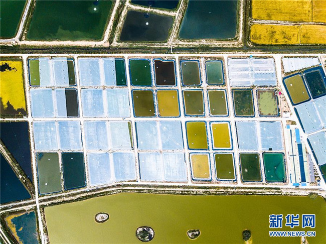 寧夏賀蘭縣藍(lán)灣生態(tài)園南美對(duì)蝦養(yǎng)殖基地(9月11日無(wú)人機(jī)拍攝)。 寧夏,地處中國(guó)西北腹地。這里的大山、大河、草原、沙漠、湖泊,猶如一幅幅美妙畫卷,讓人流連忘返。 新華社記者 王建華 攝