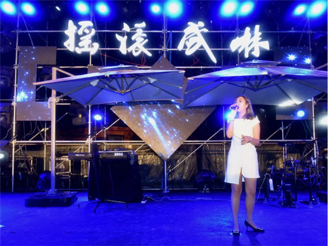 星空音樂趴于當(dāng)晚18時30分正式開始,在層巒聳翠中,浩瀚星辰下,由原創(chuàng)搖滾實(shí)效樂隊帶來的動感音樂瞬間點(diǎn)燃全場,華旅集團(tuán)營銷中心各位美女為大家?guī)韯痈鞋F(xiàn)代舞,馬超武術(shù)表演隊伍更是展現(xiàn)了劍、九節(jié)鞭、棍、拳的華夏男兒力量之美,DJ、MC電音律動,現(xiàn)場聽眾更是融入其中,服裝上的熒光粉在夜空中也化作點(diǎn)點(diǎn)星光,與天、地、舞臺融為一體,撩人電音牽手活力運(yùn)動,燃爆初秋的第一把火!這是一個聞所未聞的華山“武林”。