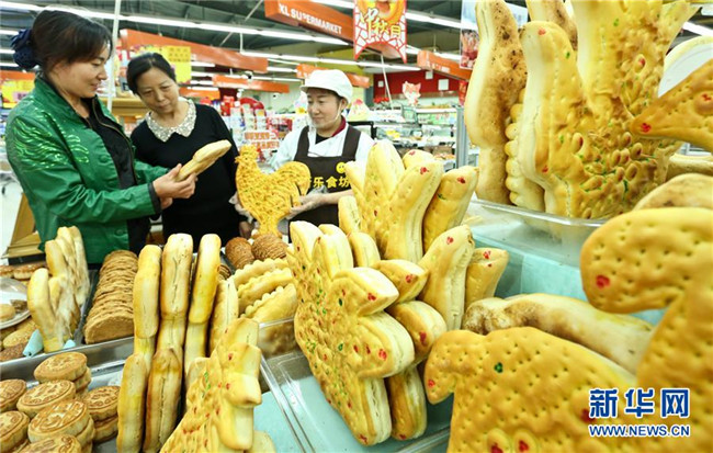 中秋節(jié)前制作“土月餅”是甘肅張掖的傳統(tǒng)習(xí)俗,至今已有千年歷史。“土月餅”用醒發(fā)后的面團(tuán)做成各種造型,再經(jīng)烤制而成,物美價(jià)廉,深受市民歡迎。新華社發(fā)(王將 攝)