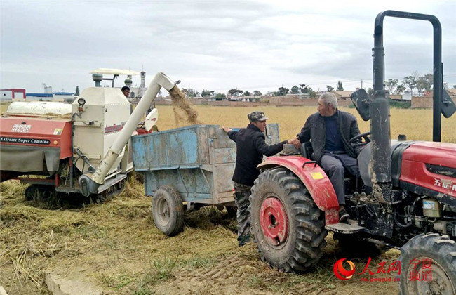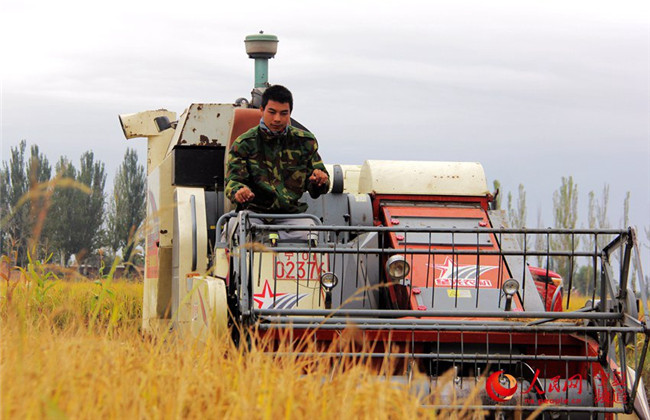 秋高氣爽,位于寧夏回族自治區(qū)銀川市賀蘭縣的水稻陸續(xù)成熟,進(jìn)入收割期,農(nóng)民搶抓農(nóng)時(shí)進(jìn)行收割。豐收的喜悅,揮灑在人們的汗水中,綻放在人們的笑容里。據(jù)悉,2018年銀川市糧食種植面積138.94萬畝,其中水稻51.16萬畝,玉米53.38萬畝,小麥27萬畝,雜糧7.4萬畝。預(yù)計(jì)2018年全市糧食產(chǎn)量74萬噸。(閻夢婕、高嘉蔚)