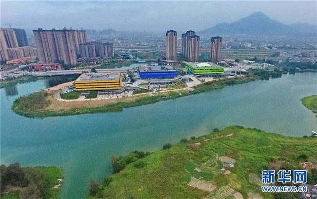 這是利用木蘭溪流域舊河道開挖成的人工湖——玉湖。當(dāng)?shù)卦诖私Y(jié)合周邊公共綠地,建設(shè)公共建筑,實(shí)現(xiàn)了現(xiàn)代建筑與自然景觀渾然一體(8月6日無人機(jī)拍攝)。新華社記者 林善傳 攝