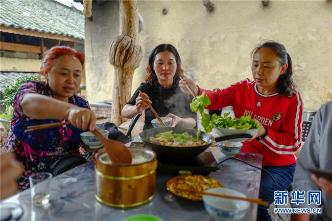 9月19日,游客在花田鄉(xiāng)何家?guī)r村的農(nóng)家樂里品嘗花田貢米和土家美食。記者劉潺攝