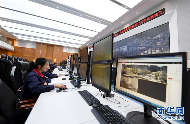 延安煤油氣資源綜合利用項目工作人員在中控室工作(9月28日攝)。新華社記者 劉瀟 攝