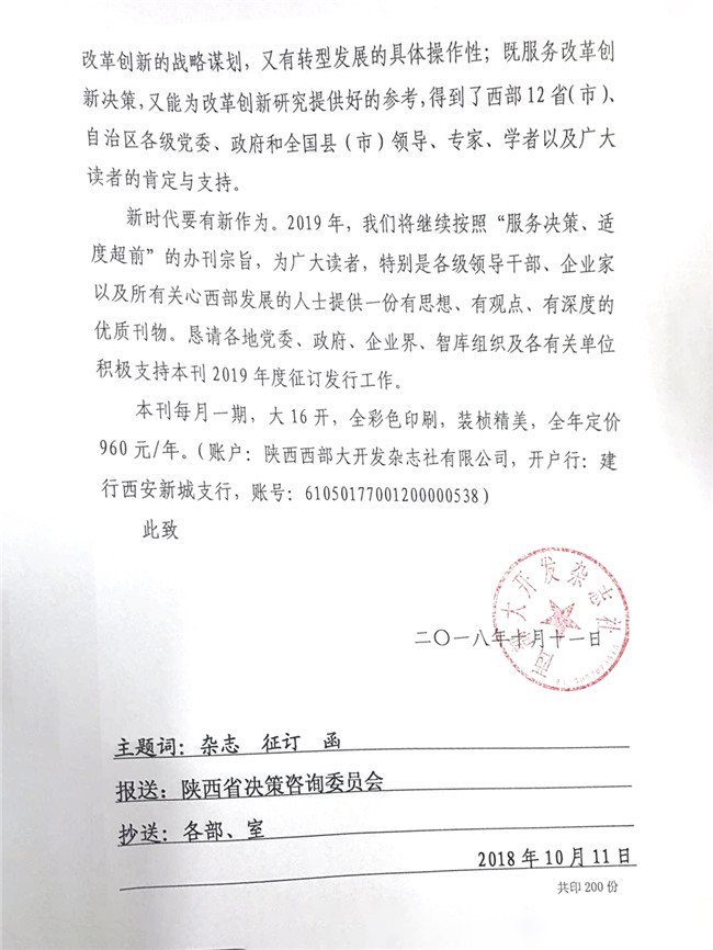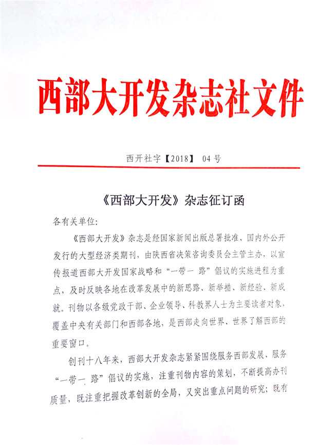 《西部大開發(fā)》雜志征訂函