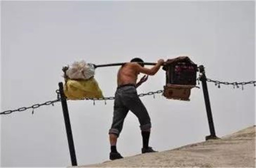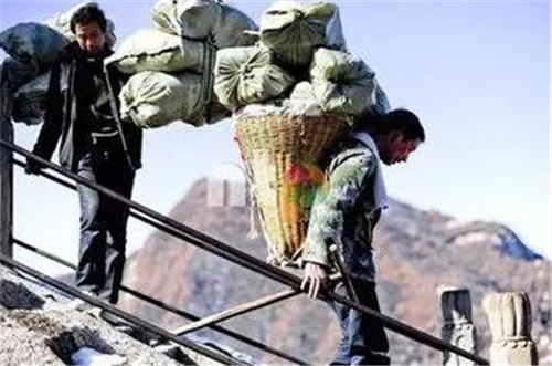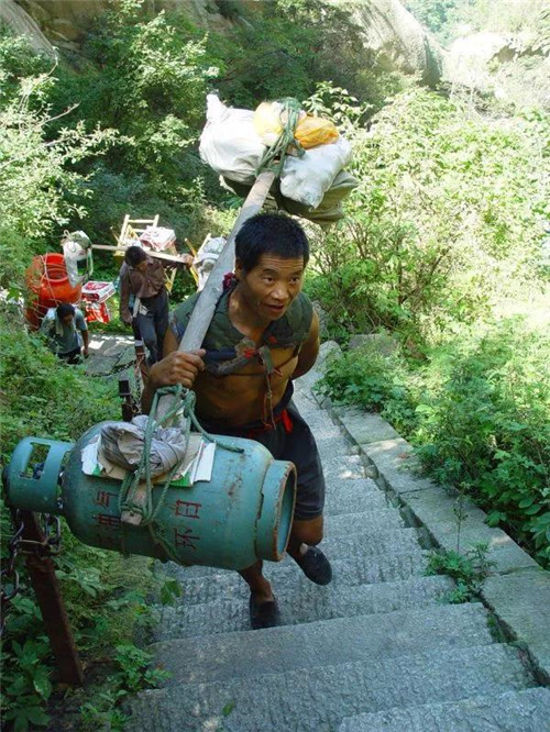 以前爬華山時(shí),碰到的華山挑夫看上去大都三四十歲的樣子,也有年長(zhǎng)的,這些人普遍是因?yàn)榧彝ダщy,生活所迫,不得已用肩膀挑起了家里的生活重?fù)?dān)!