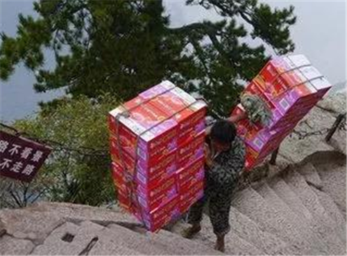 可是,有一群人,每天背著幾十斤重的貨物在華山上下,如履平地,數(shù)十年如一日,這就是華山上的別樣風(fēng)景---挑山工。
