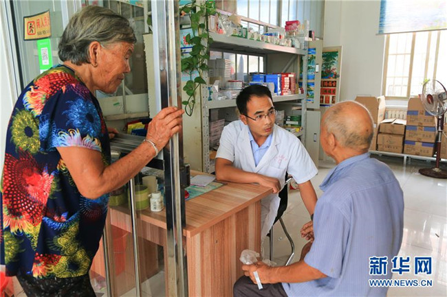 在山東費(fèi)縣朱田鎮(zhèn)崔家溝社區(qū),當(dāng)?shù)卮迕裨谛l(wèi)生室就診(8月22日攝)。崔家溝村是遠(yuǎn)近聞名的“光棍村”“貧困村中的貧困村”。2016年3月,崔家溝村在中央異地搬遷政策的扶持下,實(shí)現(xiàn)了整體搬遷,1600多口人搬到了鎮(zhèn)駐地。從此,昔日的“光棍村”,一躍進(jìn)入朱田鎮(zhèn)富裕村行列。新華社記者 王南 攝