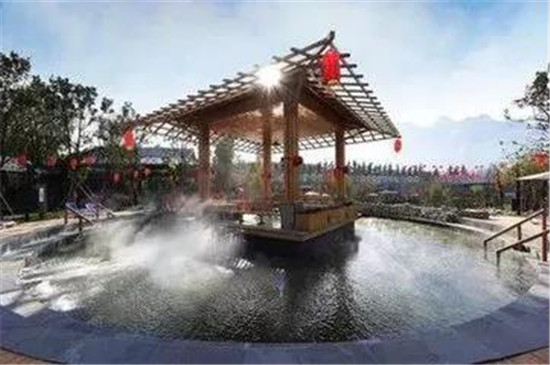 28個湯池,各具特色,湯池水量充沛,出水溫度55℃,為弱酸性水,富含氟、碘、鍶、偏硼酸等對人體健康有益的微量元素和礦物質(zhì),具有很高的理療價值。