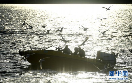 11月14日,人們?cè)诶ッ鞯岢剡呌^賞紅嘴鷗?! ⌒氯A社記者 藺以光 攝