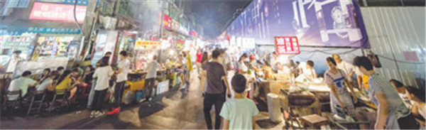 湖北武漢吉慶街一到晚上就展現(xiàn)出獨(dú)特的魅力,賣花的、賣唱的、吃飯的、閑逛的,人聲鼎沸。熱干面、豆皮、面窩、鴨脖子、蝦球、毛豆……讓人們深夜依舊流連忘返。