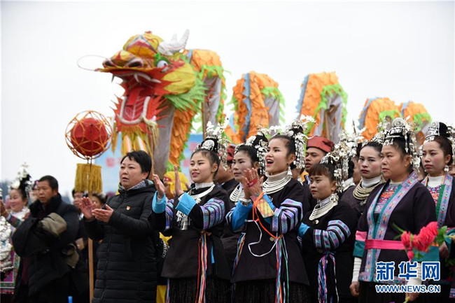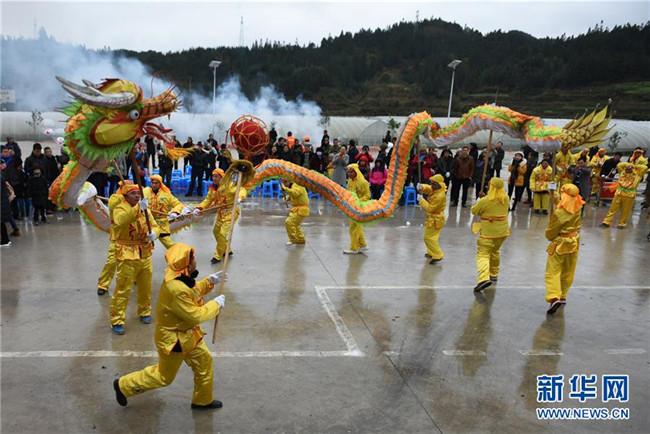 12月9日,貴州省黎平縣中潮鎮(zhèn)佳所侗寨的村民在侗年活動中舞龍?!⌒氯A社發(fā)(楊文斌 攝)