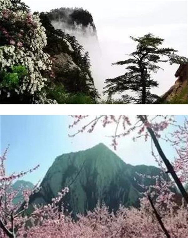 春季的華山,陽光照耀下帶些許微冷的山氣,時常有如煙如霧的霧靄在山嶺間浮動,色彩繽紛的小花悄然綻放,點綴四處的山坡;