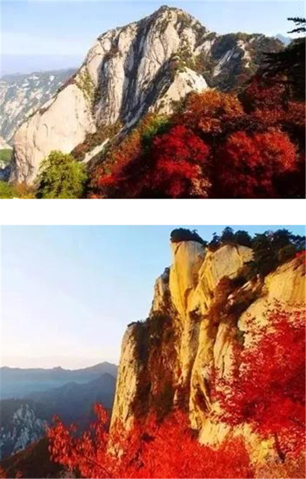 秋季的華山,紅葉滿山,山崖為底,松檜為墨,一抹絢爛令人心顫,是登山的最佳季節(jié);
