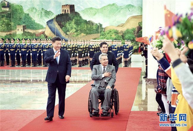 習(xí)近平指出,2016年,我對(duì)厄瓜多爾進(jìn)行國事訪問,兩國建立全面戰(zhàn)略伙伴關(guān)系,翻開了中厄關(guān)系發(fā)展新篇章??偨y(tǒng)先生上任后致力于深化中厄友好合作,我對(duì)此表示贊賞。推動(dòng)中厄關(guān)系健康穩(wěn)定發(fā)展,符合兩國和兩國人民根本利益,也符合和平、發(fā)展、合作、共贏的時(shí)代潮流。