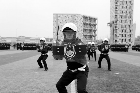 把警摩上特制的擋風(fēng)玻璃取下來,立馬就成了防身盾牌,結(jié)合警棍使用,威力巨大……在昨天成都市公安交警系統(tǒng)警務(wù)技能大比武閉幕式上,成都交警“鐵馬戰(zhàn)盾”首次亮相,讓觀眾大開眼界。