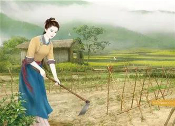 有一天,太陽(yáng)從東方升起,不遠(yuǎn)處的華山峰頂上便披上了一層金色的彩虹。羅敷早早就起來打扮自己,發(fā)髻微微盤起在側(cè),耳戴明月耳環(huán),身著紅色短襖,淺黃色花紋羅裙,收拾停當(dāng),帶上采桑的工具,高高興興地出門,往峪田里走去。羅敷邊走邊想,王可一定在等著她,商量終身大事呢。