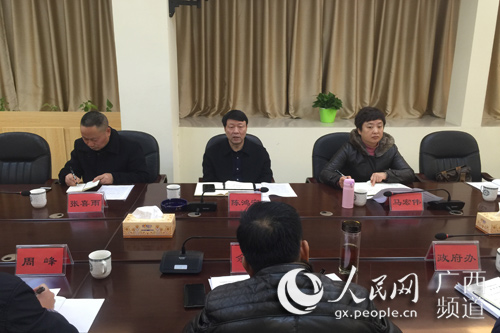 人民網(wǎng)柳城1月9日電 1月7日下午,柳州市委常委、政法委書記陳鴻寧到柳城縣專題調(diào)研精準(zhǔn)扶貧工作。柳州市委政法委副書記陳建軍,柳城縣委副書記、縣長(zhǎng)余瑞軍,柳州市委政法委委員、政治部主任馬宏偉,柳城縣委常委、政法委書記周峰陪同調(diào)研。