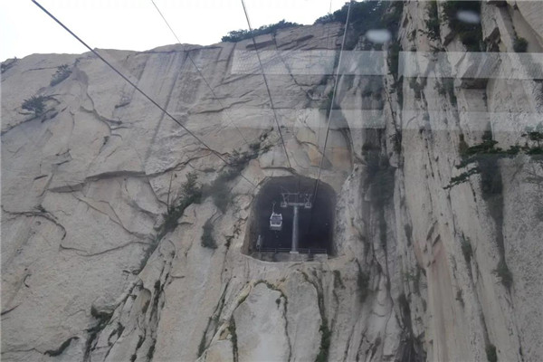 從華山的群峰頂飛越,就像乘坐飛機往云層之上爬升一樣,心中提著一口氣,不敢呼也不敢喘;遇到陡直的升降,好像失去控制的電梯讓人緊張??墒撬鞯擂I箱外的奇險,又會讓人情不自禁驚呼、尖叫!正是上午巳時,盛夏的驕陽耀眼炙熱。四周刀劈斧鑿般的潔白山體,在無遮無掩的烈日的照耀下,白的晃眼,也許這就是“華山睛雪”的由來。