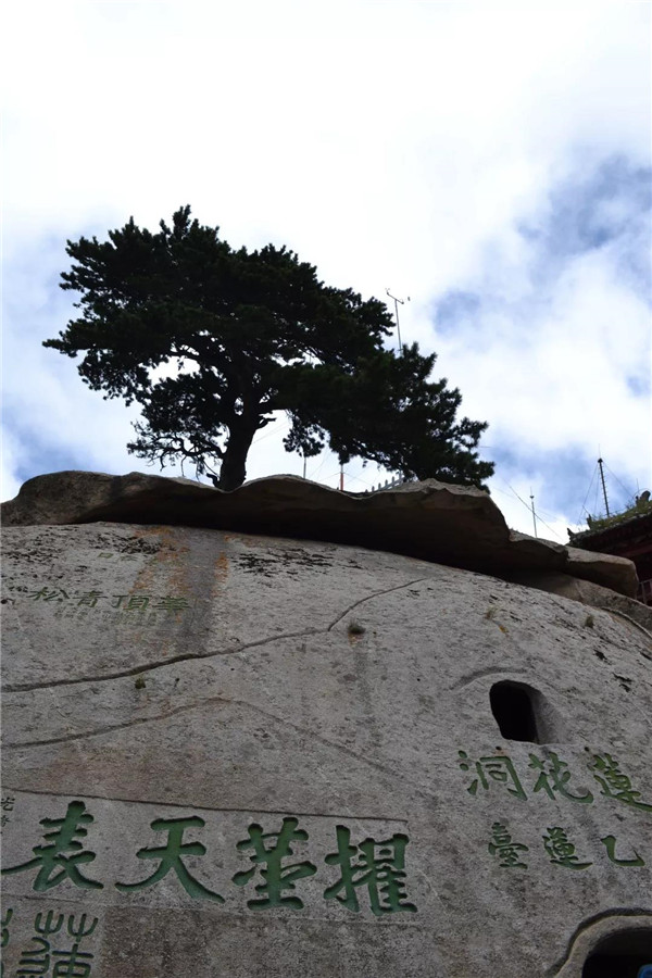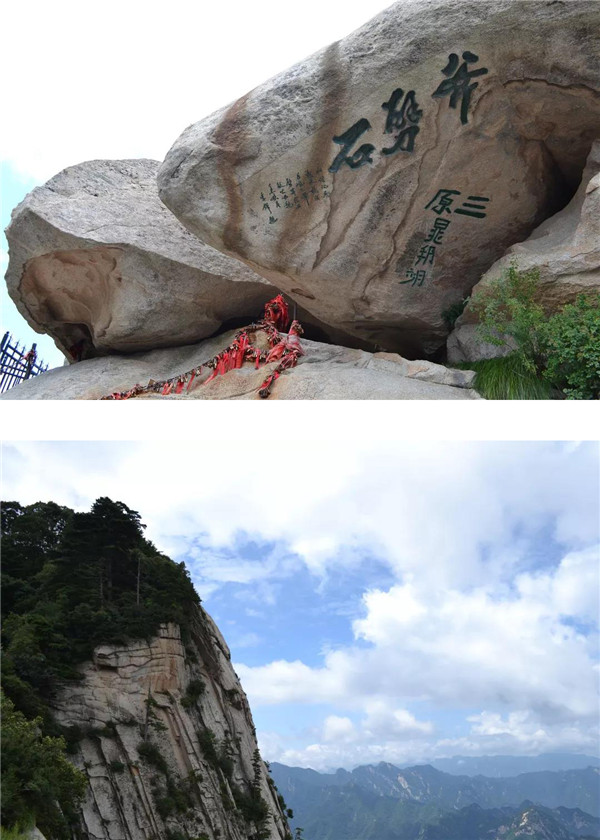 在南峰頂,孩子看到“天下絕無沉魚面,太華獨有落雁峰”的題刻,打趣我:“媽媽,你叫鴻雁,這里又叫落雁峰,真是和你有緣呢!快來這塊大石頭上落落腳,歇一歇!”“好??!咱倆都爬累了,都歇一歇!”我為孩子的體貼欣慰!