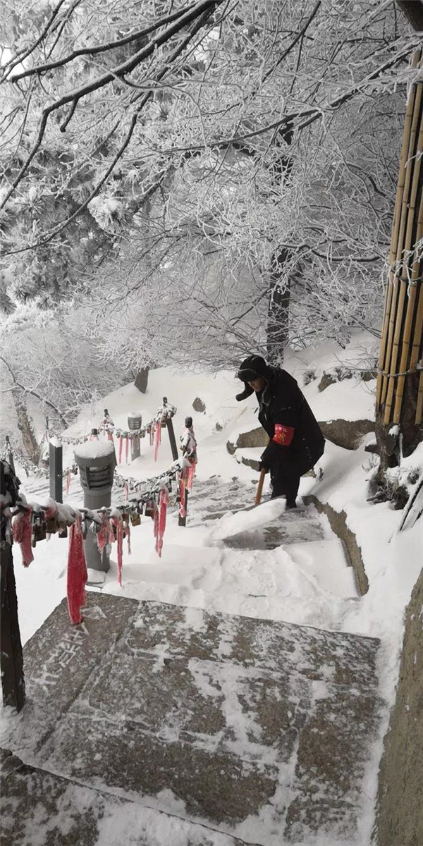 1月29日至31日,華山景區(qū)迎來降雪天氣,華旅集團各單位迅速組織工作人員對路面冰雪進行了清理,24小時不間斷地進行掃雪除冰和應急值守工作,有效降低了雨雪天氣對景區(qū)旅游秩序的不利影響。
