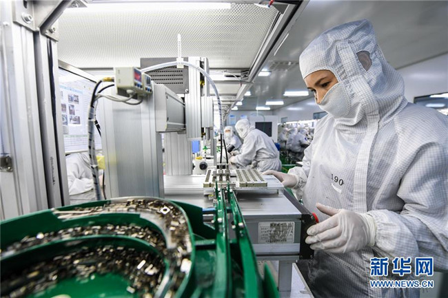 2月23日,在內(nèi)蒙古包頭市江馨微電機公司的生產(chǎn)線中,工作人員在展示微電機成品。新華社記者 彭源 攝