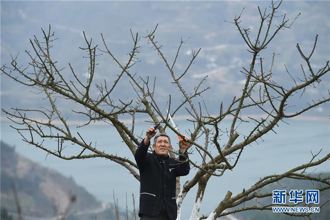 重慶市巫山縣曲尺鄉(xiāng)朝陽村村民在脆李種植地里對脆李樹進(jìn)行管護(hù)(2019年2月16日攝)。新華社記者王全超攝