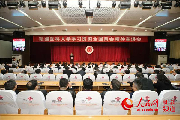 3月17日上午,新疆醫(yī)科大學(xué)會(huì)議廳內(nèi)座無(wú)虛席,4位出席十三屆全國(guó)人大二次會(huì)議的新疆全國(guó)人大代表返回烏魯木齊后,第一時(shí)間在新疆醫(yī)科大學(xué)開(kāi)展全國(guó)兩會(huì)精神宣講。