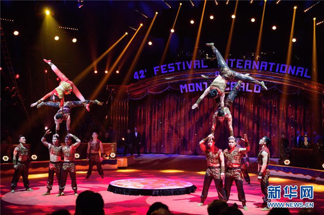 這是2018年1月20日,中國上海雜技團在摩納哥蒙特卡洛馬戲節(jié)上表演。 新華社記者 陳益宸 攝