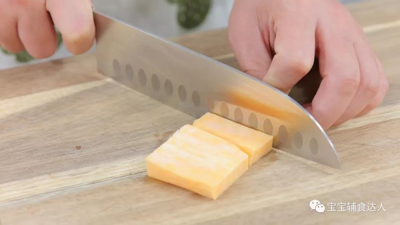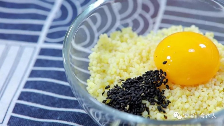 食材準備:小米飯70克、紅薯50克、黑芝麻2克、蛋黃1個