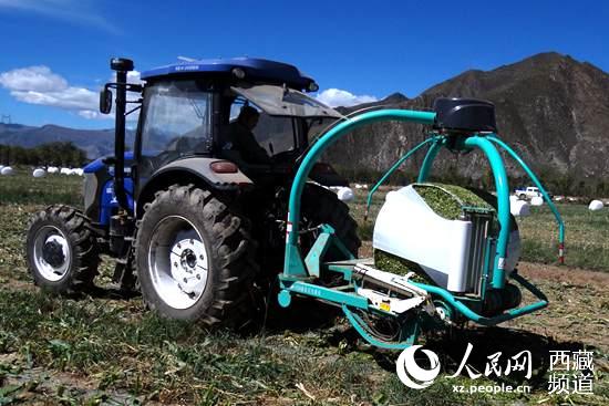 正在作業(yè)的玉米青貯飼料一體機(jī),據(jù)了解青貯飼料能保持原有營(yíng)養(yǎng)價(jià)值的75%以上。 麥之穗供圖