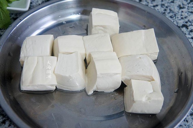 1.買回來的水豆腐,巴馬這邊1元錢買這樣大小的10塊豆腐,做一頓剛剛好,很嫩,用水沖洗一下,控凈水分