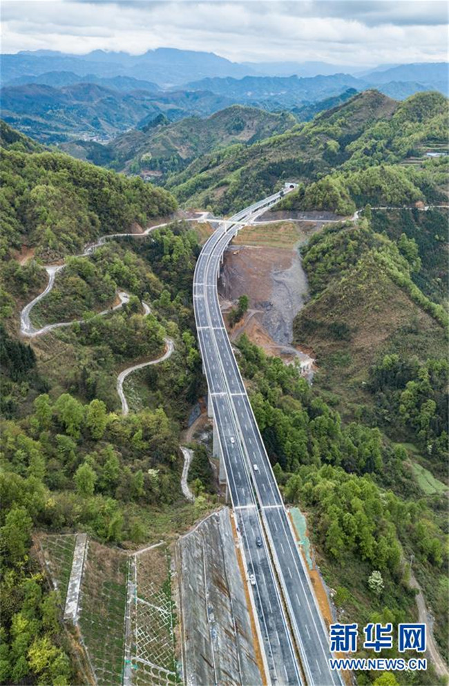 4月3日無(wú)人機(jī)拍攝的三荔高速三都西至中和路段。 新華社記者 陶亮 攝