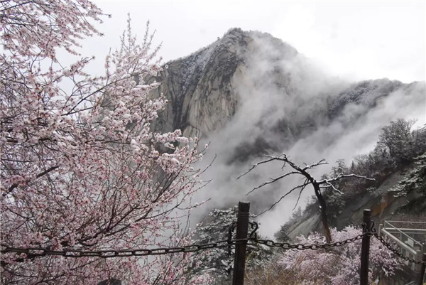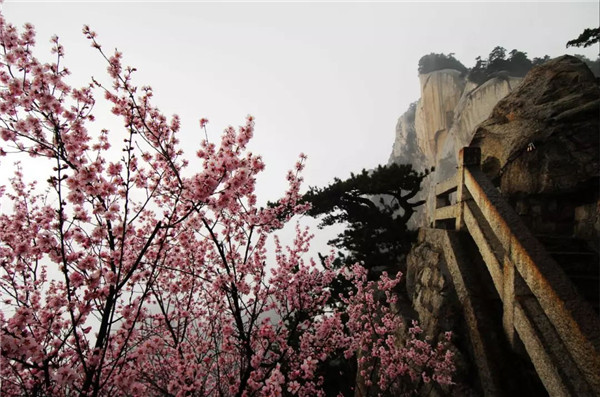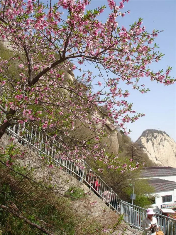 四月的春天,伴隨著微微涼意,華山山間的桃花開(kāi)得格外鮮艷,四月的清風(fēng)輕輕吹,空氣中彌漫著淡淡的花香。最美不過(guò)人間四月天,天空是湛藍(lán)的,草地是翠綠的,大地是溫暖的,花兒是五顏六色的。呼吸著清晨新鮮的空氣,美好的一天從登上華山開(kāi)始。