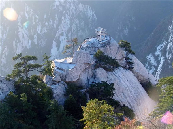 華山古稱“西岳”,是我國(guó)著名的五岳之一,南接秦嶺,北瞰黃渭,扼守著大西北進(jìn)出中原的門戶。華山由一塊完整碩大的花崗巖體構(gòu)成,有東、西、南、北、中五峰,主峰有南峰“落雁”、東峰“朝陽(yáng)”、西峰“蓮花”,三峰鼎峙。最高峰也是五岳最高峰—南峰“落雁”海拔2154.9米。