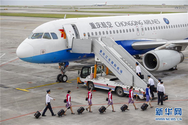 4月18日,重慶江北國際機場停機坪上,重慶航空公司的試飛機組成員在有序登機。當日,隨著重慶航空一架客機安全平穩(wěn)降落在巫山機場,標志著地處長江三峽核心區(qū)的巫山機場試飛工作圓滿成功。本次試飛對巫山機場陸空通信、導(dǎo)航設(shè)施、跑道道面、滑行路線、飛行區(qū)標志標識、機場凈空、飛行程序、機場運行標準等進行全面檢驗,各項參數(shù)和指標正常,機場相關(guān)設(shè)施、設(shè)備均符合行業(yè)規(guī)范要求,飛行區(qū)已基本具備民航飛機通航條件,有望在今年6月正式通航。新華社記者 劉潺 攝