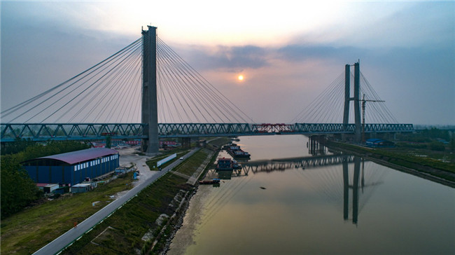 世界最大跨度無砟軌道高速鐵路橋梁——商合杭鐵路裕溪河特大橋順利合龍