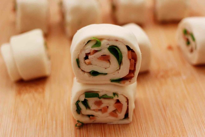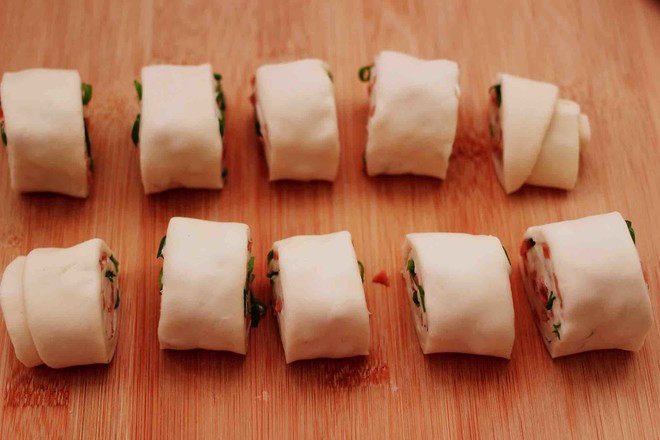 主料:中筋面粉200克 小香蔥3顆 火腿腸1根 酵母2.5克 鹽1克 花椒粉2克 花生油5克