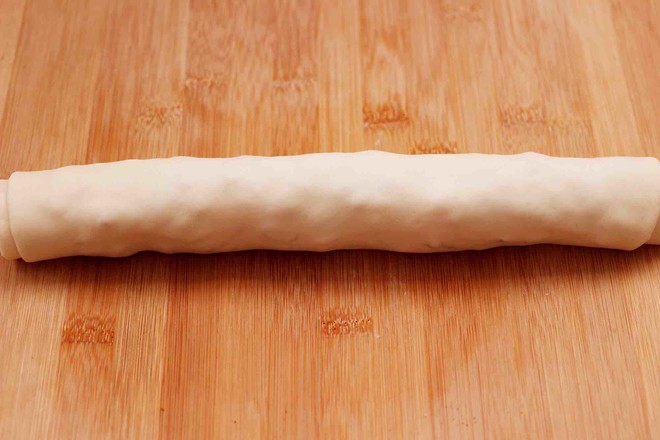 6.把醒發(fā)好的面團(tuán)排氣揉勻后。