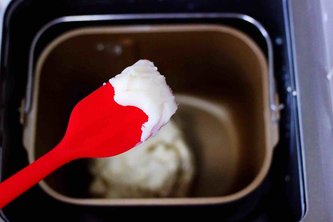 3.一個(gè)和面程序后,加入豬油再來一個(gè)和面程序,加了豬油的花卷,味道更香濃,花卷更蓬松柔軟筋道。