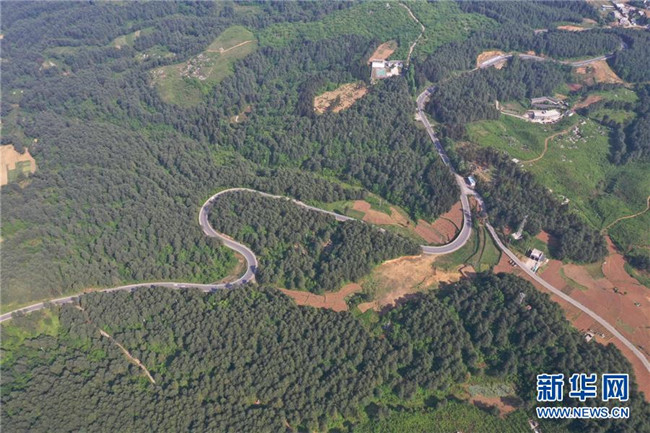 這是4月27日拍攝的貴州省畢節(jié)市赫章縣平山國(guó)有林場(chǎng)一角(無人機(jī)拍攝)。新華社記者 楊楹 攝
