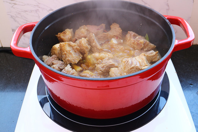 2. 排骨中途放進(jìn)去,以防提前燉的太爛糊了。