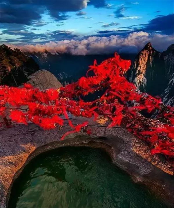 華山是一座奇山,一石成一岳。自然景觀具有非常獨(dú)特的個(gè)性色彩。華山的石奇,是因?yàn)樗梢徽麎K完整的花崗巖構(gòu)成,經(jīng)過(guò)造山運(yùn)動(dòng)形成了千姿百態(tài)的奇峰峭嶺和幽谷險(xiǎn)道。華山的路奇,“自古華山一條路”是一道奇觀,這條路或越澗跨溝,或臨崖盤山,或入崖間深谷,或走峭壁嶺脊,或平坦或曲陡,或?qū)挸ɑ颡M窄,曲折變化,跌宕起伏,把人帶入意境深邃的萬(wàn)般景象之中。華山的水奇,華山的水不以盛見(jiàn)長(zhǎng),而以水景奇觀叫絕。“仰天池”不盈三尺,水深不過(guò)尺余,卻澇不溢,旱不涸。華山的樹奇,華山多古樹名木,成千上百年樹齡的古松匯聚成林,奇?zhèn)延^,更奇的是那些長(zhǎng)在山腰崖畔,扎根石縫,連理連枝的松樹,像夫妻相擁,兄弟并立,姐妹相望,義士結(jié)盟,體現(xiàn)了人文文化的豐富內(nèi)涵。