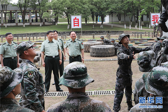 5月21日,中共中央總書記、國(guó)家主席、中央軍委主席習(xí)近平到陸軍步兵學(xué)院視察。這是習(xí)近平觀看學(xué)員進(jìn)行極限訓(xùn)練。新華社記者 李剛 攝