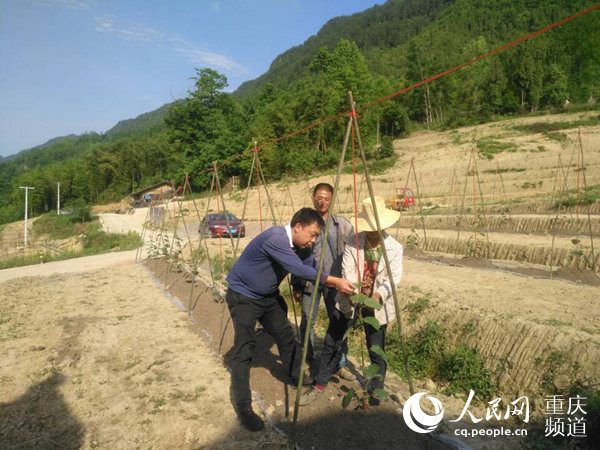 “不著急,肥料鋪均勻再下苗。”萬(wàn)州區(qū)果樹站副站長(zhǎng)周偉,正手把手教向紅兵栽種果樹。
