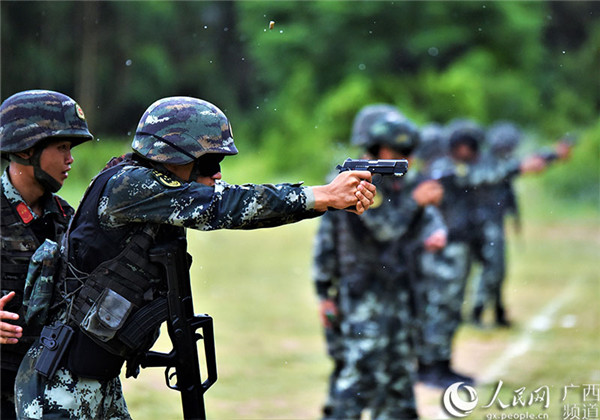 訓(xùn)練期間,射擊場(chǎng)突降大雨,雨水順著頭盔滑過特戰(zhàn)隊(duì)員們的臉龐,給射擊瞄準(zhǔn)帶來了不小的影響,在步手槍連續(xù)快速射擊課目中取了得10發(fā)10中好成績(jī)的特戰(zhàn)隊(duì)員林意鋒告訴筆者:“戰(zhàn)場(chǎng)上有很多不可預(yù)見性,幾秒鐘都可能決定成敗,我覺得無論刮風(fēng)下雨,只有牢牢掌握這種絕對(duì)快相對(duì)準(zhǔn)的射擊本領(lǐng),才能更高效地完成各類反恐處突任務(wù)。”(沈泉池、朱洋洋、余海洋)